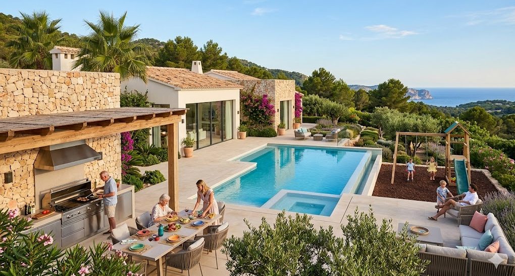 El lujo también es que cada miembro de la familia tenga su lugar. Estas villas no solo ofrecen una piscina privada espectacular, sino también amplias zonas de juegos, barbacoas profesionales y total seguridad.